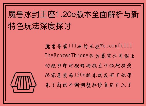 魔兽冰封王座1.20e版本全面解析与新特色玩法深度探讨