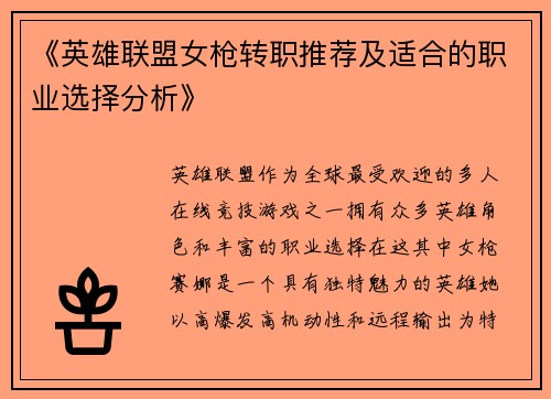 《英雄联盟女枪转职推荐及适合的职业选择分析》